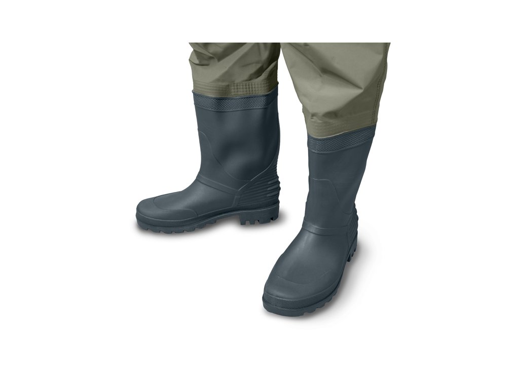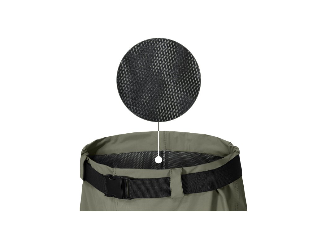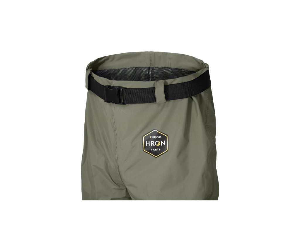Brodiace nohavice Delphin HRON Pants poskytujú skvelé riešenie pre pohyb v plytšej vode, kde nie je nutné použitie vysokých brodiacich čižiem. Výborne sa hodia aj pre použitie do člna. Vďaka svojej praktickosti a neutrálnemu dizajnu sú vhodné pre všetky rybolovné techniky. Nohavice majú nízku hmotnosť a odladený strih, vďaka čomu poskytujú voľný pohyb a komfortné nosenie. Samozrejmosť je úplná vodeodolnosť a vysoká životnosť materiálu. Vyberateľný opasok umožňuje prispôsobiť šírku pásu nohavíc postave rybára. Gumené čižmy s odolnou a stabilnou podrážkou poskytujú skvelú oporu aj v náročných podmienkach. Výčnelky v oblasti päty uľahčujú vyzúvanie. Zloženie: taslon / PVC