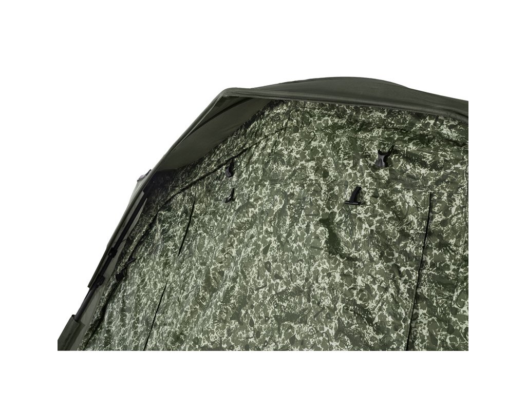 Predný panel tvorí vizuálne veľmi zaujímavý prvok, ktorí poteší najmä priaznivcov C2G kamufláže a dodáva celému brolly punc originality. Okrem toho je možné ho v prípade potreby kompletne odopnúť a RAMBLER využívať ako jednoduchý prístrešok s dáždnikovou konštrukciou počas stabilného počasia či krátkych vychádzok k vode. Samozrejmosťou sú tiež dva úchyty FixROD, slúžiace na opretie a zafixovanie prútov.