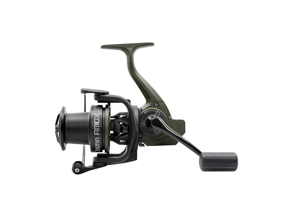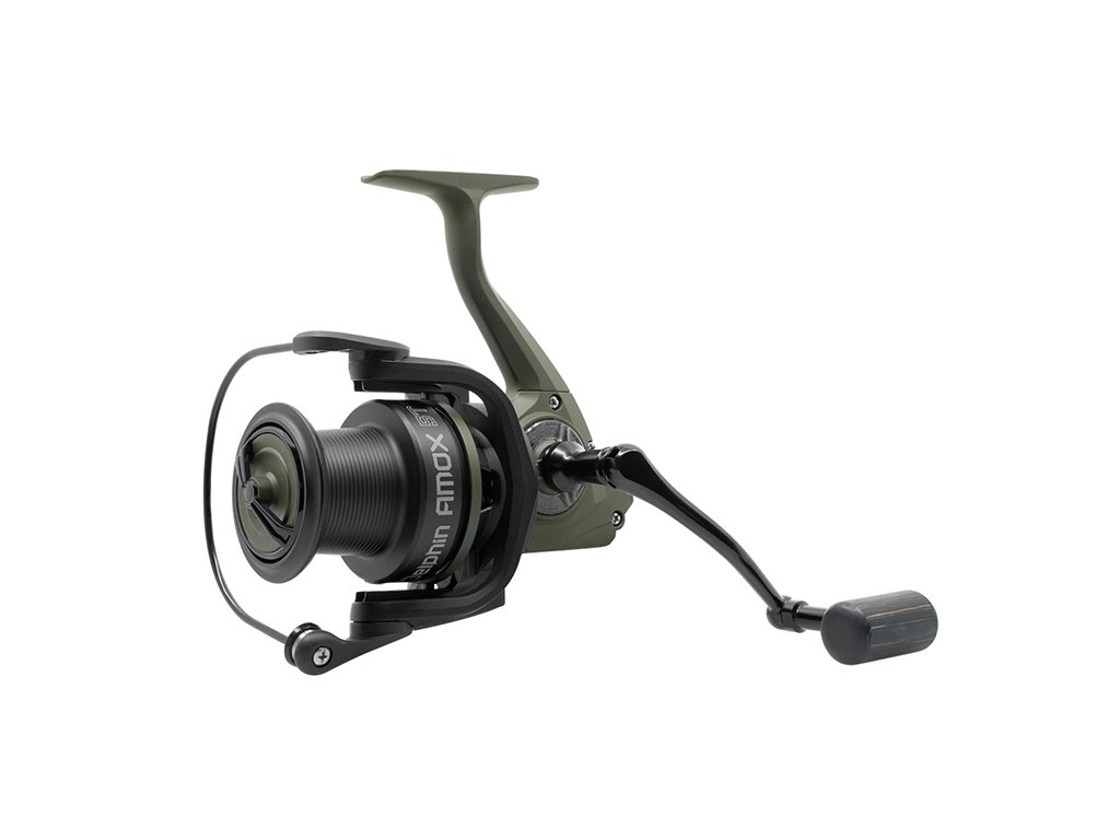Štíhla kovová kľučka je ukončená tmavým dreveným madlom, ktoré sa výborne drží v ruke a dodáva navijaku exkluzívny vzhľad. AMOX je dizajnovaný do matnej zelenej farby v kombinácii s čiernou, ktoré sú doplnené lesklými časťami, zaujímavými karbónovými prvkami a efektnými výrezmi na tele navijaku.