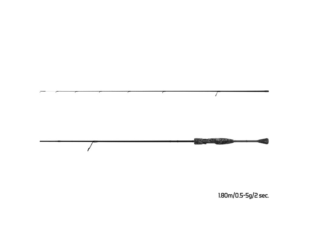 Model: 180cm/0.5-5g Počet dielov: 2 Priemer blanku nad rukoväťou: 6,8mm Počet očiek: 8 Transportná dĺžka: 95,5cm Hmotnosť: 80g Rukoväť: delená, EVA pena Dĺžka rukoväte (od spodnej časti prúta po stred sedla): 31cm