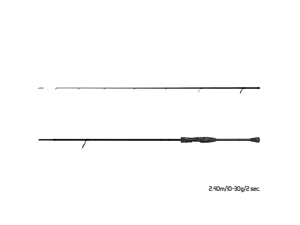 Model: 240cm/10-30g Počet dielov: 2 Priemer blanku nad rukoväťou: 11,3mm Počet očiek: 9 Transportná dĺžka: 126cm Hmotnosť: 120g Rukoväť: delená, EVA pena Dĺžka rukoväte (od spodnej časti prúta po stred sedla): 35,5cm