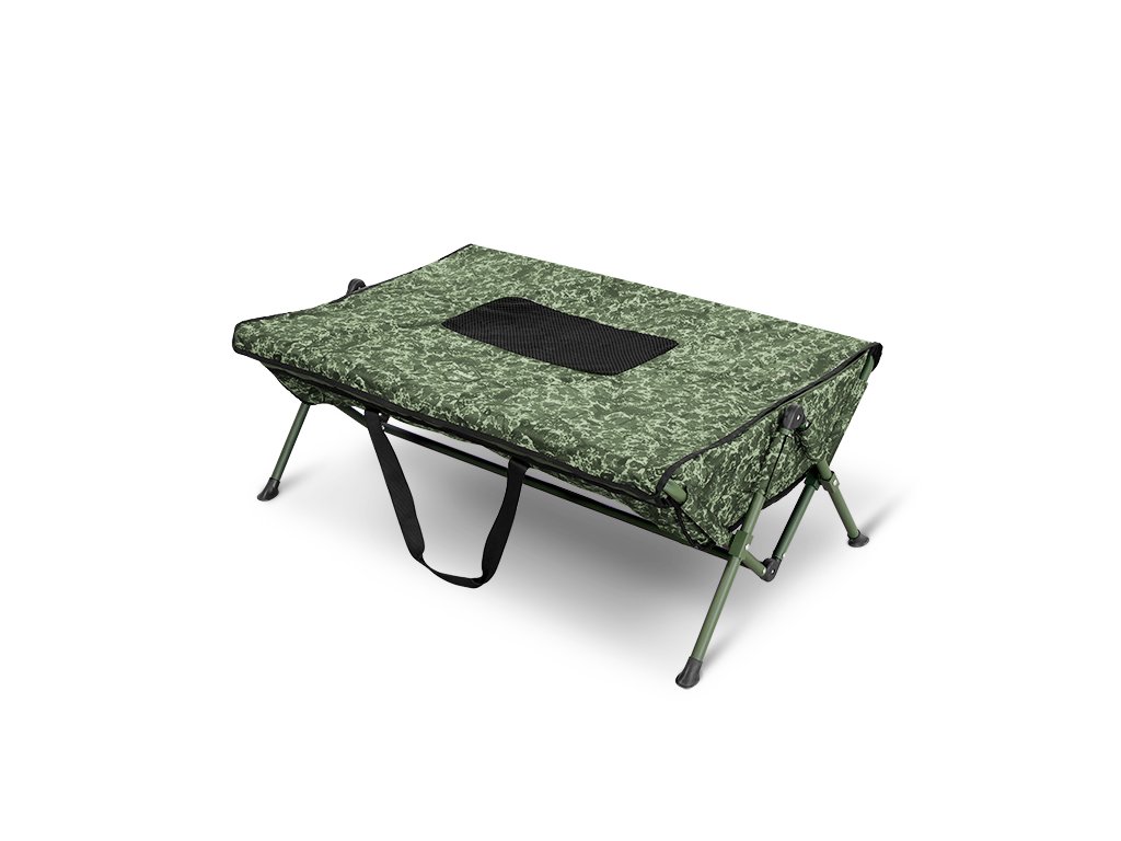 Luxusná, priestranná kolíska s nožnicovým systémom otvárania/zatvárania konštrukcie, ktorá poskytne dokonalú ochranu vašim úlovkom počas pobytu na brehu. Zvolený typ konštrukcie robí túto kolísku veľmi pevnou a zároveň ľahko skladnou. Konštrukcia je vyhotovená z trubiek o priemere 20mm, čo zaručuje jej stabilitu a odolnosť voči vonkajším vplyvom. Samotné lôžko je vyrobené z pogumovaného materiálu, ktorý nenasáva vodu ani pachy. Okrem toho je takýto materiál veľmi rýchlo schnúci a ľahko umývateľný. V spodnej časti kolísky je po celej dĺžke jemná pogumovaná sieťka, ktorá je navyše poistená popruhmi proti pretrhnutiu. Vo vrchnej časti kolísky sa nachádza pogumované látkové prekrytie so sieťovinovým priezorom. Toto prekrytie je fixovateľné pomocou suchého zipsu. Vďaka tomu vám úlovok nemôže z kolísky vyskočiť pri príprave napríklad na váženie či fotenie. Prekrytie je navyše navrhnuté v patentovanom C2G vzore, čím vám Cradle bude dokonale ladiť s inými produktmi z tejto jedinečnej série. Kolíska je opatrená textilnými madlami na uľahčenie prenášania v zloženom stave. Technické parametre: Rozmery: 100x65x35cm Transportné rozmery: 100x45x10cm Hmotnosť: 4,2kg| Kategória: | Podložky a kolísky |