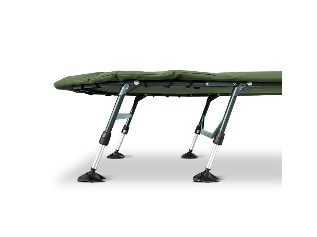 Jeho základom je veľmi pevná, odolná a zároveň ľahká konštrukcia zelenej farby, ktorá spolu s ôsmimi nohami dodáva lehátku potrebnú stabilitu. Výškovo nastaviteľné nohy sú na koncoch opatrené robustnými pätkami na guľových čapoch, čo im umožňuje prispôsobiť sa nerovnostiam terénu. Pár nôh pod hlavou je navyše opatrený zaisťovacím mechanizmom, čo uľahčuje rozloženie lehátka a zároveň zabraňuje neželanému sklápaniu, či posunu.