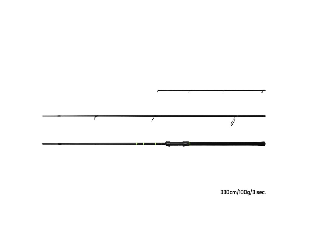 Model 330cm/100g Počet dielov: 3+špičky Priemer blanku nad rukoväťou: 11,7mm Počet očiek (prút + špička): 7+6 Transportná dĺžka: 112cm Hmotnosť: 172g Rukoväť: EVA pena Dĺžka rukoväte (od spodnej časti prúta po stred sedla): 49cm Priemer špičky: 2,8mm