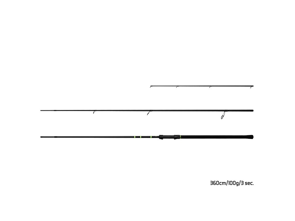 Model 360cm/100g Počet dielov: 3+špičky Priemer blanku nad rukoväťou: 12mm Počet očiek (prút + špička): 7+6 Transportná dĺžka: 126cm Hmotnosť: 184g Rukoväť: EVA pena Dĺžka rukoväte (od spodnej časti prúta po stred sedla): 51cm Priemer špičky: 2,8mm