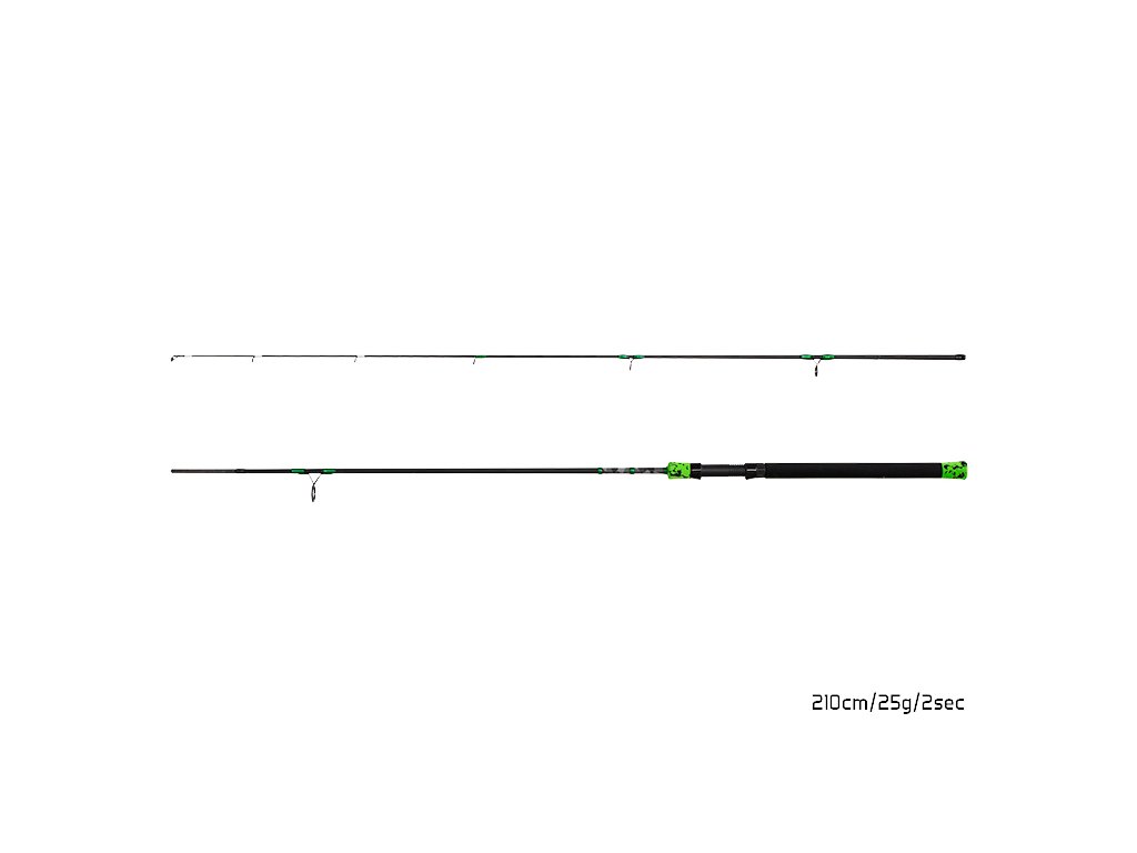 Model: 210cm/25g Počet dielov: 2 Transportná dĺžka: 110cm Počet očiek: 7 Priemer blanku nad rukoväťou: 10mm Hmotnosť: 120g Rukoväť: EVA pena Dĺžka rukoväte (od spodnej časti prúta po stred sedla): 27cm