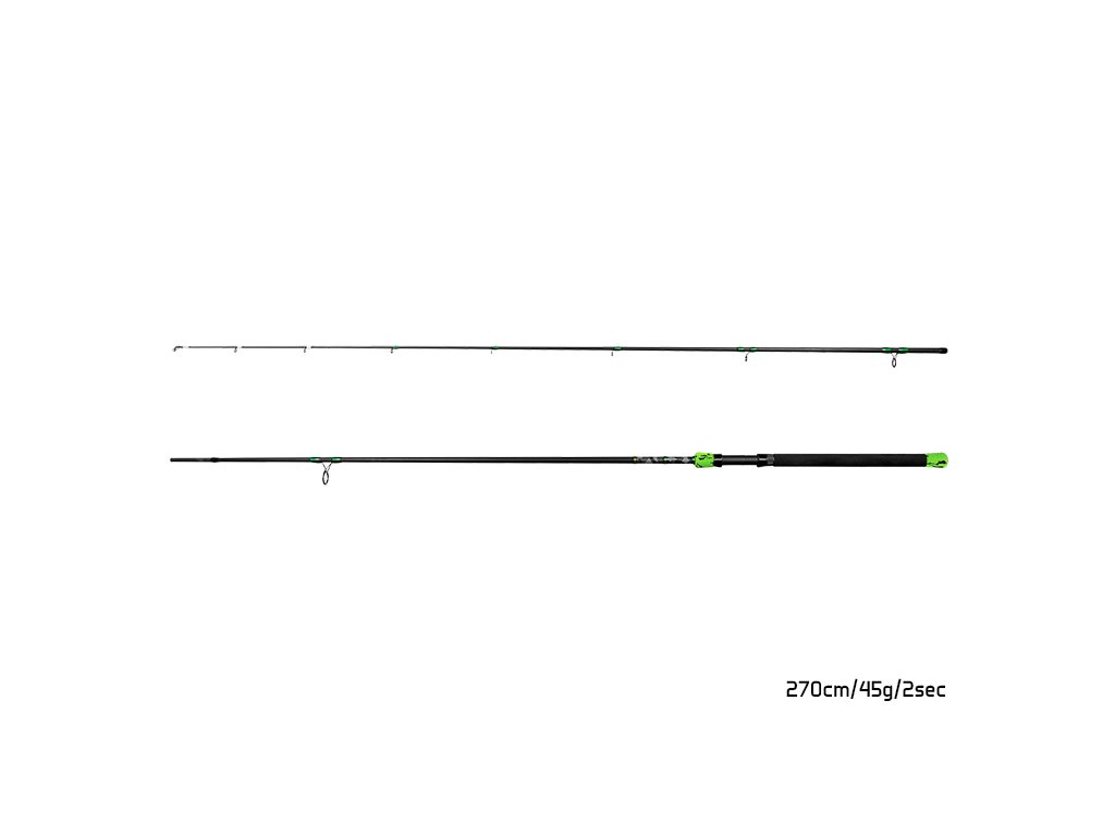 Model: 270cm/45g Počet dielov: 2 Transportná dĺžka: 140cm Počet očiek: 9 Priemer blanku nad rukoväťou: 12mm Hmotnosť: 214g Rukoväť: EVA pena Dĺžka rukoväte (od spodnej časti prúta po stred sedla): 38cm
