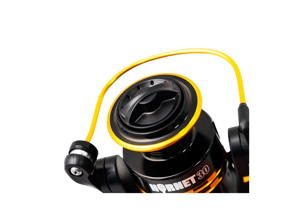 Model HORNET je atraktívny a moderný navijak postavený na overenom technickom základe. Vďaka ideálnemu dimenzovaniu vnútorného mechanizmu sa tento navijak môže pýšiť veľmi dlhou životnosťou a solídnym výkonom za výbornú cenu. Široká paleta veľkostí ho predurčuje k veľmi rozsiahlemu využitiu v rôznych rybolovných technikách. Grafitové telo je veľmi tuhé a nekrúti sa ani pod záťažou. Vďaka kovovej kľučke s ergonomickým madlom výborne padne do ruky. Kovová cievka je dostatočne hlboká a v závislosti od veľkosti poskytuje dostatok priestoru pre vaše potreby. Vďaka dokonale vyváženému rotoru je chod tohto navijaku veľmi hladký a plynulý.