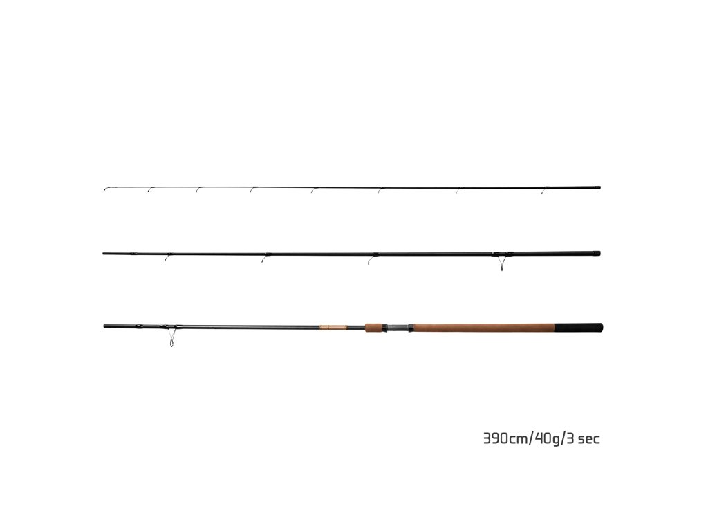 Model: 390cm /40g/ Počet dielov: 3 Priemer blanku nad rukoväťou: 14 mm Počet očiek: 13 Transportná dĺžka: 135 cm Hmotnosť: 190g Rukoväť: EVA pena Dĺžka rukoväte (od spodnej časti prúta po stred sedla): 53cm