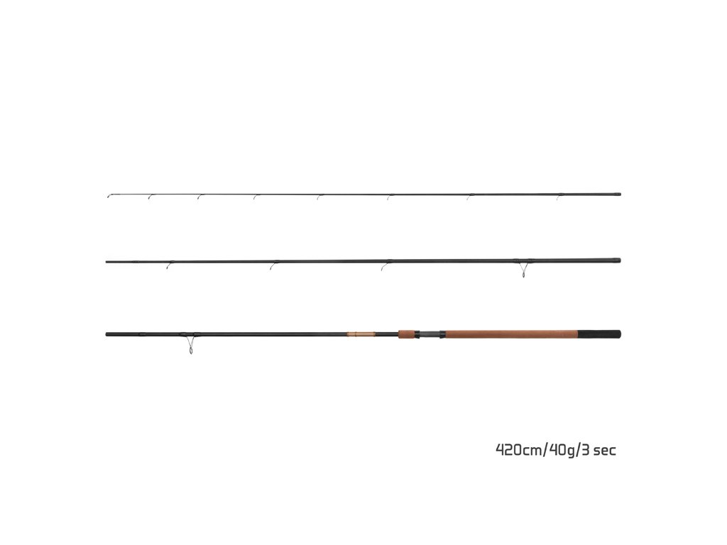 Model: 420cm /40g/ Počet dielov: 3 Priemer blanku nad rukoväťou: 14,5 mm Počet očiek: 13 Transportná dĺžka: 146,5 cm Hmotnosť: 210g Rukoväť: EVA pena Dĺžka rukoväte (od spodnej časti prúta po stred sedla): 53cm
