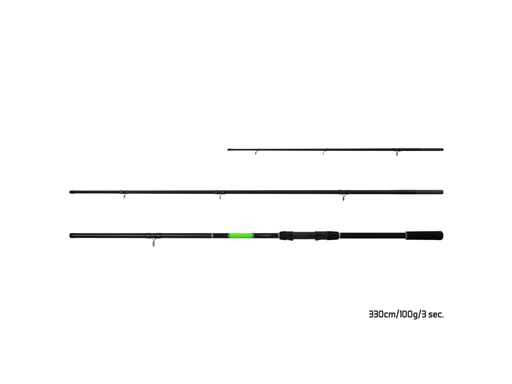 Model: 330cm/100g Počet dielov: 3 Priemer blanku nad rukoväťou: 17,34mm Počet očiek: 12 Transportná dĺžka: 117cm Hmotnosť: 278g Rukoväť: delená, EVA pena Dĺžka rukoväte (od spodnej časti prúta po stred sedla): 47cm Priemer špičky: 3.50mm
