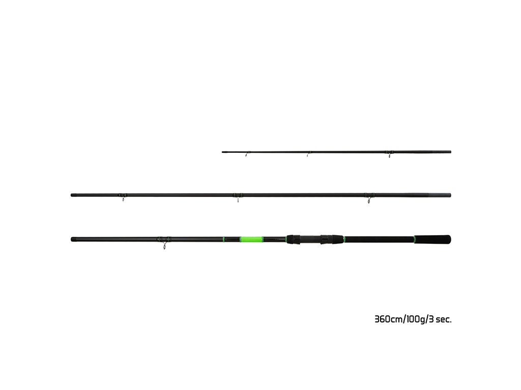 Model: 360cm/100g Počet dielov: 3 Priemer blanku nad rukoväťou: 19,42mm Počet očiek: 12 Transportná dĺžka: 127cm Hmotnosť: 372g Rukoväť: delená, EVA pena Dĺžka rukoväte (od spodnej časti prúta po stred sedla): 50cm Priemer špičky: 3.50mm