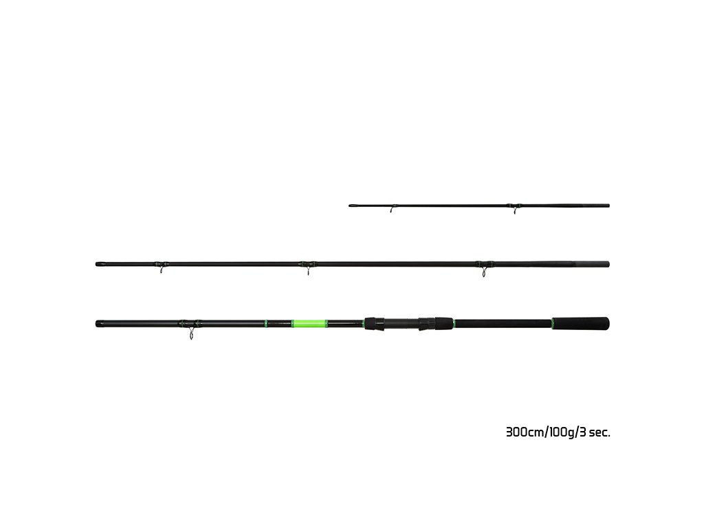 Model: 300cm/100g Počet dielov: 3 Priemer blanku nad rukoväťou: 17,20mm Počet očiek: 11 Transportná dĺžka: 107cm Hmotnosť: 252g Rukoväť: delená, EVA pena Dĺžka rukoväte (od spodnej časti prúta po stred sedla): 45cm Priemer špičky: 3.50mm