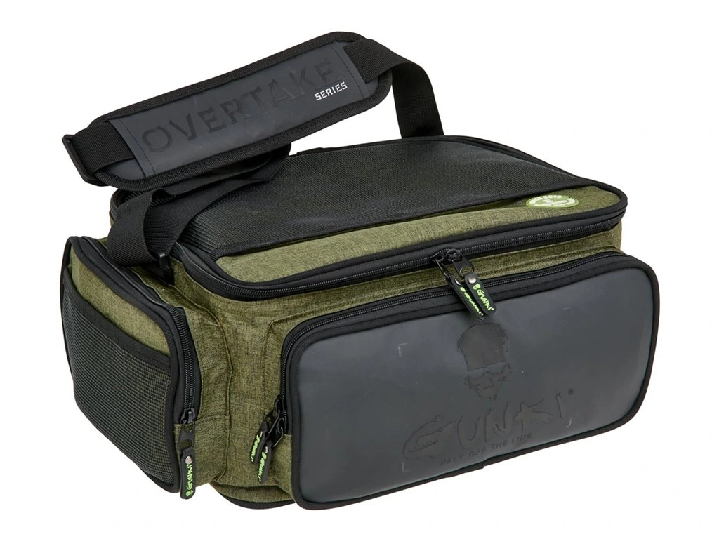 Taška na uskladnenie všetkého potrebného na prívlač. Obsahuje veľkú hlavnú komoru na zips, tri menšie vonkajšie vrecká na zips, madlá do ruky a nastaviteľný tapacírovaný popruh cez rameno. Pevná odolná tkanina je doplnená o kvalitné zipsy. To všetko v Gunki designe. Súčasťou sú aj tri krabičky na nástrahy s rozmermi 31,5x23x5 cm.