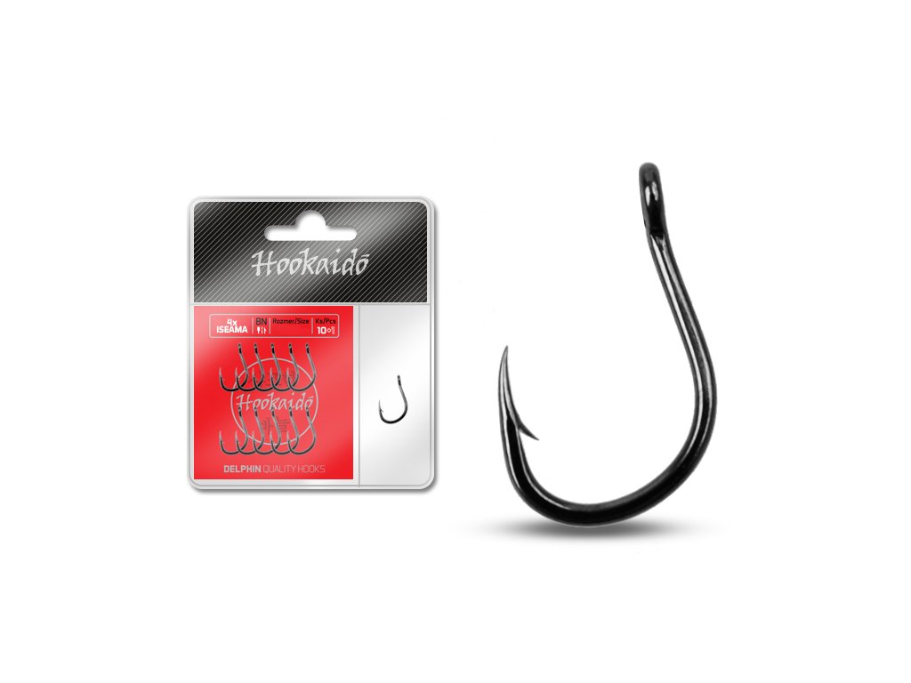 Háčiky červenej série Delphin HOOKAIDO sú určené pre každodenný rybolov. Sú veľmi odolné, ostrosť a tvar nestrácajú ani po dlhšom používaní a mnohých zdolaných rybách. Vyrobené sú len z materiálov vysokej akosti. Vďaka pestrosti tvarov a veľkostí si z tejto série vyberie každý rybár ten svoj! Asymetrické balenie 10+1 umožňuje rybárom jednoduchší výber potrebného háčika. Delphin HKD 4xISEAMA je extrémne pevným háčikom, ktorý sa hodí aj pre lov veľkých bojovných rýb vďaka hrubšiemu drôtu použitému na jeho výrobu. Má široké spektrum použitia. Mimo iné aj pre lov kaprov technikou method feeder s peletami, či ďalšími nástrahami umiestnenými mimo háčik. Technické parametre: - s očkom - s protihrotom - osovo rovný - prierez: okrúhly
