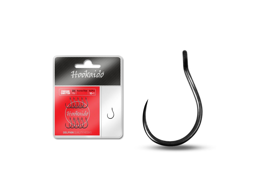 Háčiky červenej série Delphin HOOKAIDO sú určené pre každodenný rybolov. Sú veľmi odolné, ostrosť a tvar nestrácajú ani po dlhšom používaní a mnohých zdolaných rybách. Vyrobené sú len z materiálov vysokej akosti. Vďaka pestrosti tvarov a veľkostí si z tejto série vyberie každý rybár ten svoj! Asymetrické balenie 10+1 umožňuje rybárom jednoduchší výber potrebného háčika. Delphin HKD Feeder SMUTER je háčik pre lov technikou method feeder. Ideálny v spojení s peletami, kukuricou, miniboilie a ďalšími nástrahami umiestnenými na vlasovej montáži mimo háčik. Zaoblený tvar veľmi dobre drží rybu a aj keď je bez protihrotu, nemusíte mať najmenšie obavy. Povrch je navyše potiahnutý vrstvou TEFCON-u. Technické parametre: - s očkom - bez protihrotu - osovo zakrivený - prierez: okrúhly