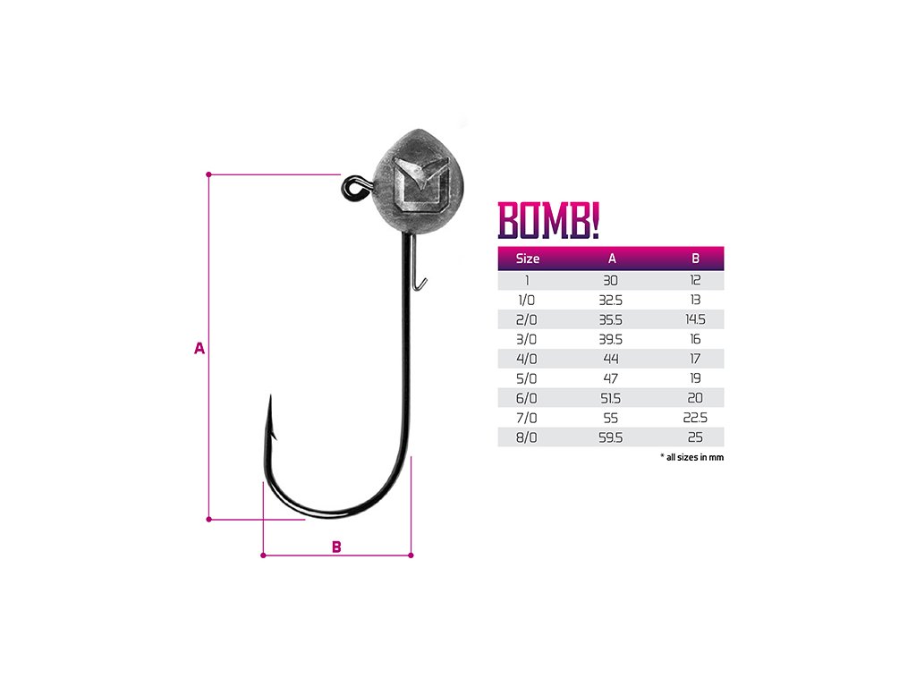 Nevídaný dizajn a najvyššia kvalita! Táto séria jigov od značky Delphin sa vyznačuje atypicky tvarovanou hlavou. Na rozdiel od klasickej ''gule'' má mierne zužujúci sa tvar smerom dopredu, čo má za následok agresívnejšie rozrážanie vody pred nástrahou a rýchlejšie a akčnejšie prepadávanie nástrahy smerom ku dnu. Séria BOMB! v sebe spája vysokokvalitný olovený odliatok bez golieriku s poistným držiakom nástrahy, ktorý zabráni zvliekaniu nástrahy pri love a na rozdiel od golierika netrhá ani štíhlejšie nástrahy. Korunou dizajnu a funkcie je extrémne ostrý háčik s výnimočnou pevnosťou. Vďaka tomuto spojeniu širokej škály kombinácii hmotností jigových hláv a veľkostí háčikov, je odteraz vaša voľba v jigoch úplne jasná. Delphin BOMB!