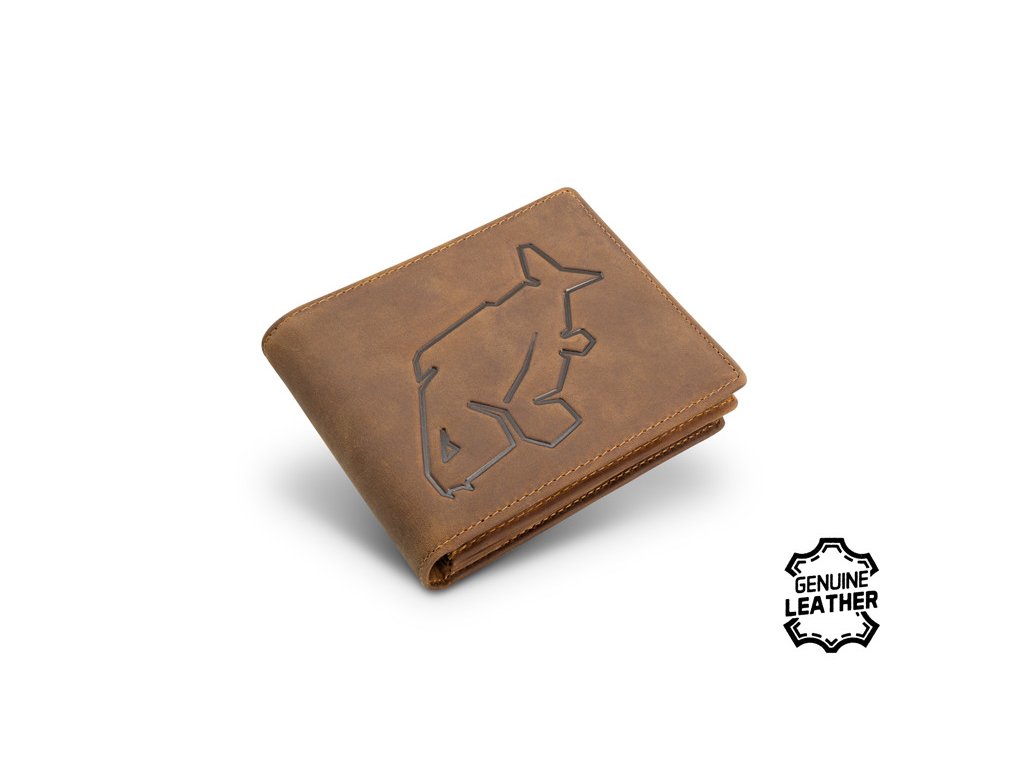 Štýlová kožená peňaženka s originálnym motívom kapra, ktorá bezpečne uchová vaše doklady aj hotovosť.