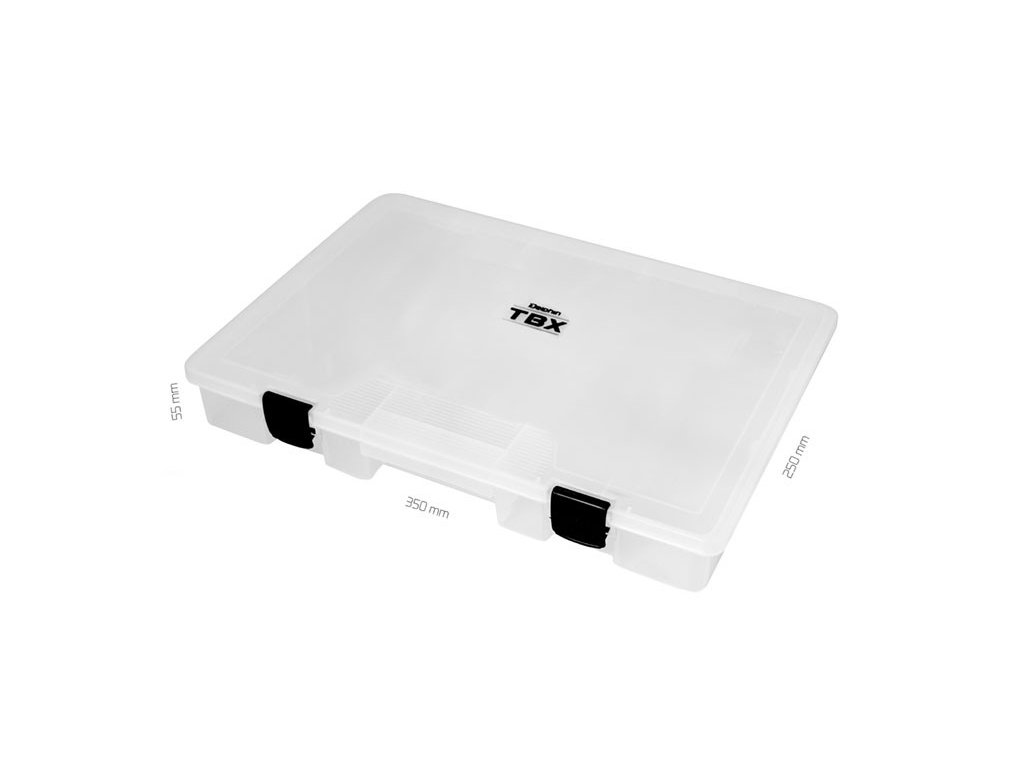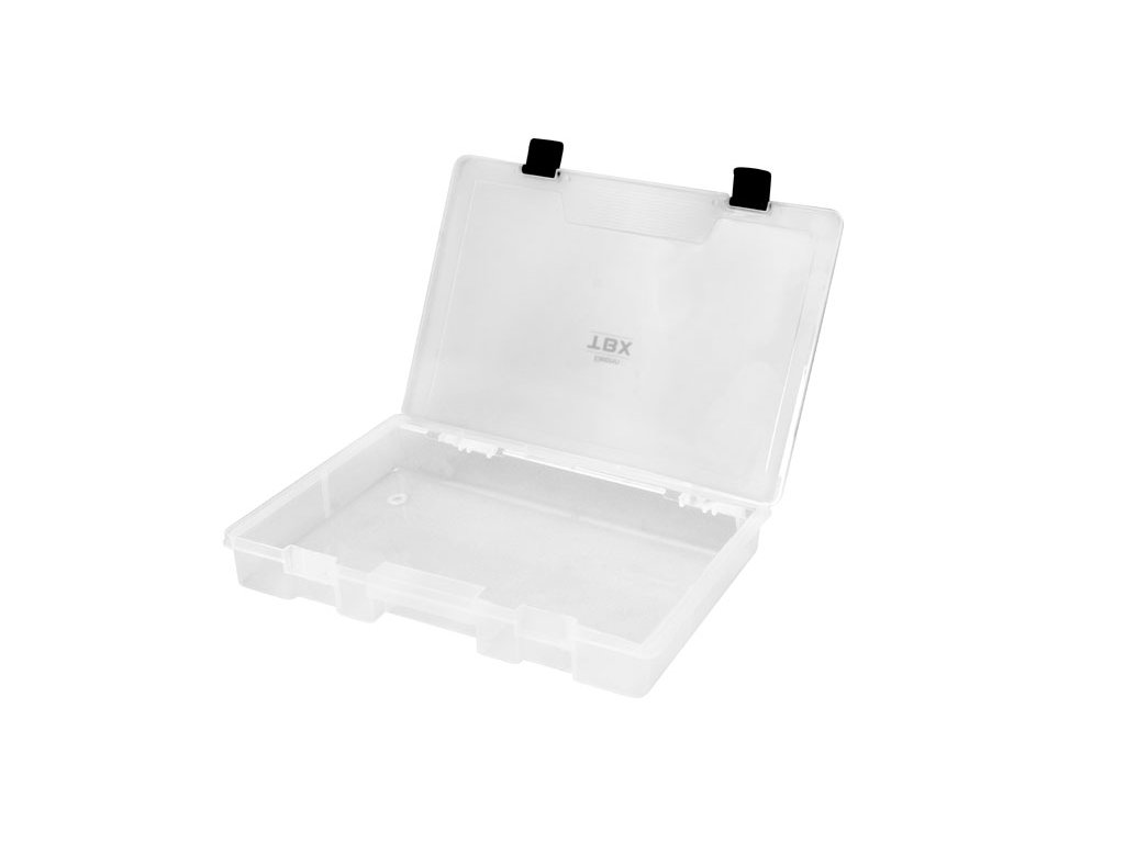 TBX ONE Clip je rada multifunkčných krabičiek určených na uloženie rybárskeho príslušenstva. Vyrobená je z transparentného plastu, takže máte vždy prehľad o uložených veciach vo vnútri krabičky. Vybavená je praktickými externými klipmi z plastu. Technické parametre: Rozmer: 350x250x55mm Počet pevných priehradiek: 1 Rozmer priehradky: 22x33x5cm Počet vkladateľných priečinkov: 0| Kategória: | Jednoduché |