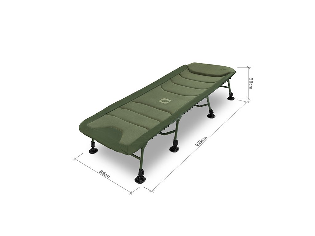 Matrac je po celej dĺžke potiahnutý mäkkým fleecom, ktorý je príjemný na dotyk a poskytuje príjemné teplo počas chladných nocí. Obvod matraca tvorí odolná 600D látka v olivovo-zelenej farbe, ktorá zaisťuje vysokú životnosť a chráni okraje pred opotrebovaním. V kombinácii s ergonomickým tvarovaním a kvalitným prešívaním ponúka lehátko maximálny komfort počas odpočinku. Hlavová časť je pre ešte väčšie pohodlie zosilnená hrubším polstrovaním.