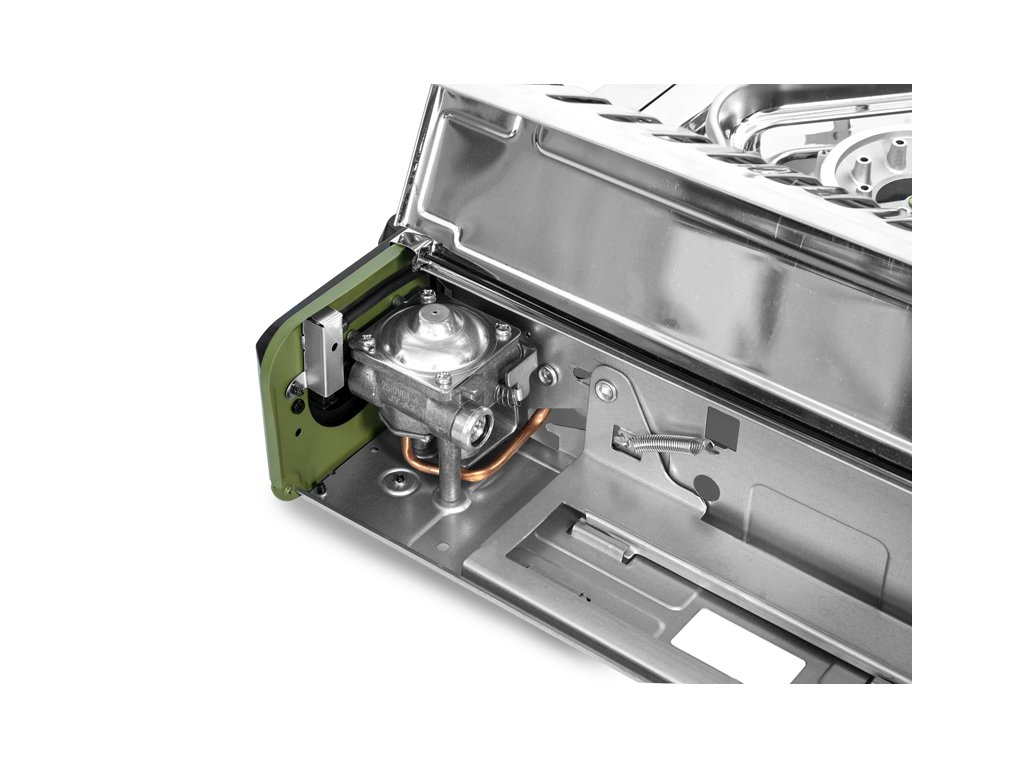Výkonný a stabilný plynový varič s výkonom až 2000 W, s ktorým si pripravíte chutné jedlo kdekoľvek v prírode – rovnako pohodlne ako doma. Ide o mimoriadne stabilný model postavený na štyroch nôžkach, ktorý spoľahlivo poslúži, či už ho položíte na stôl alebo na zem. Vďaka odolnému roštu s dostatočnými rozmermi môžete bez obáv variť aj vo väčšom hrnci či panvici. Aby sa predišlo opotrebeniu pri vysokých teplotách, rošt aj samotné telo variča sú vyrobené z nehrdzavejúcej ocele, ktorá sa navyše veľmi ľahko čistí. Výrezy na rošte spoľahlivo zabraňujú nechcenému zošmyknutiu riadu počas miešania. Varič je napájaný propán-butánovými kartušami typu CP250 s objemom 400 ml. Disponuje tzv. two-stage safety systémom, vďaka ktorému je používanie maximálne bezpečné. Na zapálenie plameňa je najskôr potrebné kartušu zafixovať pomocou páčky na prednej strane variča. Tým sa výrazne znižuje riziko nechceného úniku plynu alebo jeho samovoľného uvoľnenia. Pre maximálne jednoduchú manipuláciu je Delphin INOXIA vybavený otočným regulátorom, ktorý slúži na presné nastavenie prietoku plynu. Vďaka piezoelektrickému zapaľovaniu, ktorým varič disponuje, môžete zabudnúť na zápalky či zapaľovač – oheň si rozžnete jednoducho otočením kolieska na maximum. Varič je navyše v základe dodávaný v praktickom plastovom kufríku s rúčkou na pohodlný transport. Vďaka kompaktnému tvaru je ľahko skladovateľný a vždy pripravený na ďalšiu výpravu. Technické parametre: Výkon: 2000 W Typ kartuše: CP250 (400 ml) Palivo: Propán - bután Zapaľovanie: Piezoelektrické Hmotnosť variča: 1375g Rozmery: 34x26x8cm Transportné rozmery: 36x30x12cm