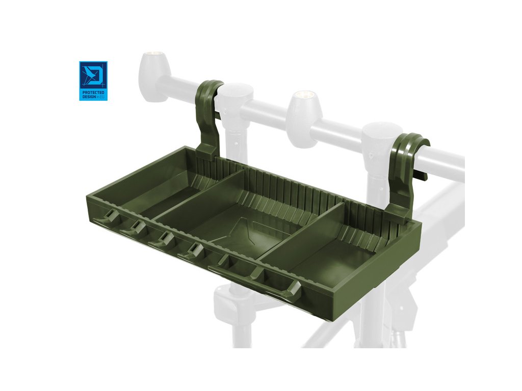 Polička slúži na uloženie rôzneho malého rybárskeho príslušenstva alebo nástrah, čo v praxi znamená, že všetky dôležité drobnosti využívané pravidelne počas lovu budete mať vždy po ruke, resp. pripravené priamo pri Vašich nahodených prútoch.