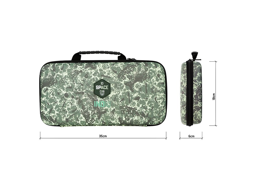 S puzdrom IndIQ budú vaše signalizátory záberu perfektne chránené a organizované, takže si ich vždy nájdete nepoškodené, v dobrom stave a pripravené do akcie. Je vyrobené z tvrdeného materiálu s potlačou C2G, ktorý je odolný, drží si tvar a lepšie odoláva vonkajším vplyvom ako bežné látkové tašky. Kvalitný zips s dvoma bežcami umožňuje úplne uzavretie puzdra. V prednej časti sa nachádza pogumované madlo, určené na pohodlný prenos a vyberanie z väčších tašiek. Na tvrdenej pene vo vnútri sa nachádzajú štyri univerzálne výrezy na závesné signalizátory, ako CAPRY, TRYO, SKIPER, ale aj iné signalizátory podobného typu, ktoré sú dostupné na trhu. Vrchná časť má penovú výplň, ktorá signalizátory fixuje a eliminuje tak možnosť ich nechceného vapadnutia či poškodenia počas prenosu. Delphin SPACE je označenie pre exkluzívnu sériu tašiek z dielne značky Delphin. Vyznačuje sa špičkovým spracovaním, kvalitnými zipsami, ale najmä výnimočným dizajnom s použitím C2G kamufláže. Technické parametre Rozmery: 35x18x6cm| Kategória: | Príslušenstvo |