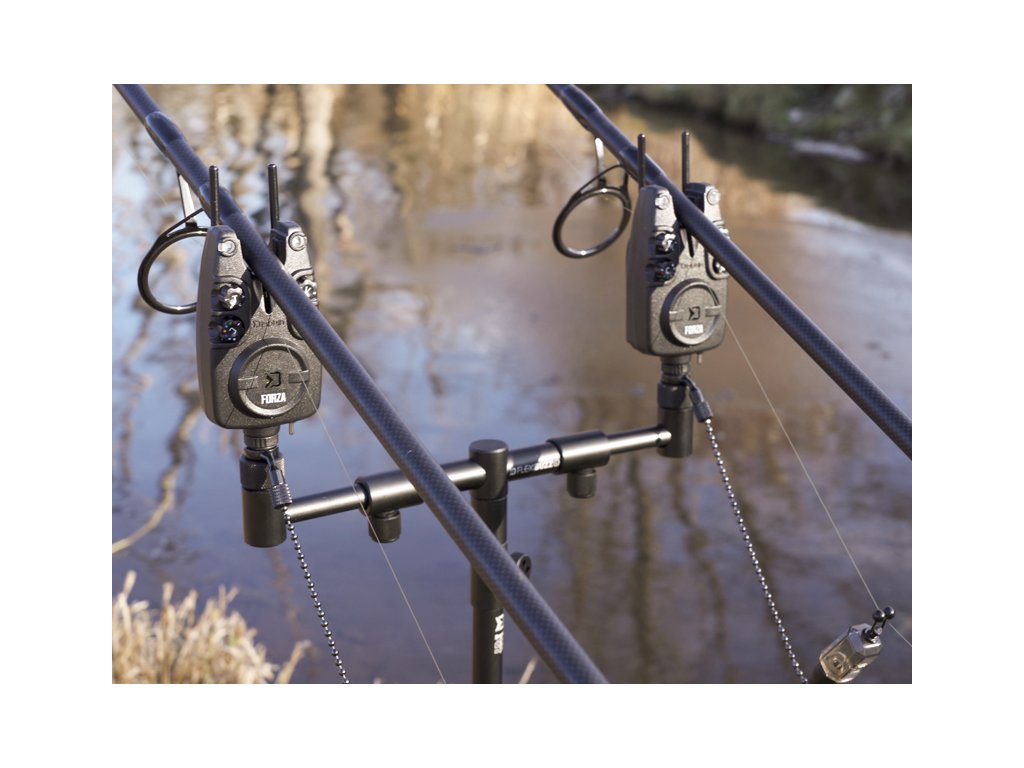 Rozťahovacia hrazda na prúty s univerzálnym závitom, kompatibilná s väčšinou rázsošiek dostupných na trhu. Jednotlivé ramená sú výsuvné, a teda je možné si šírku hrazdy prispôsobiť podľa svojich potrieb, napr. podľa veľkosti navijakov. V obľube je tiež roztiahnutie prednej hrazdy a vytvorenie vejárového rozloženia prútov, pri ktorom špičky smerujú mierne od seba. Výsuvné ramená sú zo spodnej časti zrezané do roviny, takže po utiahnutí poistných skrutiek perfektne držia na mieste a nepretáčajú sa. Vrchné závity obsahujú matice umožňujúce utiahnutie každého typu signalizátora alebo rohatiniek presne do roviny s hrazdou. FlexiBUZZ je vyrobená z pevného hliníka, s odolnou povrchovou úpravou, ktorá bola dosiahnutá pomocou práškovej čiernej farby. Dodávame ju v dvoch veľkostiach, konkrétne kratšia L, určená na dva prúty a dlhšia XL na tri prúty. Technické parametre: Dĺžka: FlexiBUZZ L 18-25cm| Kategória: | Kaprárske |