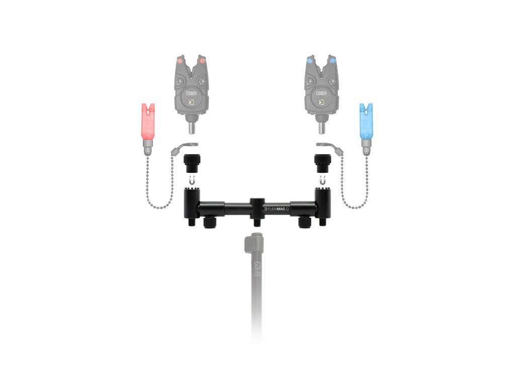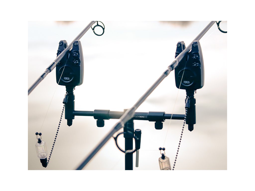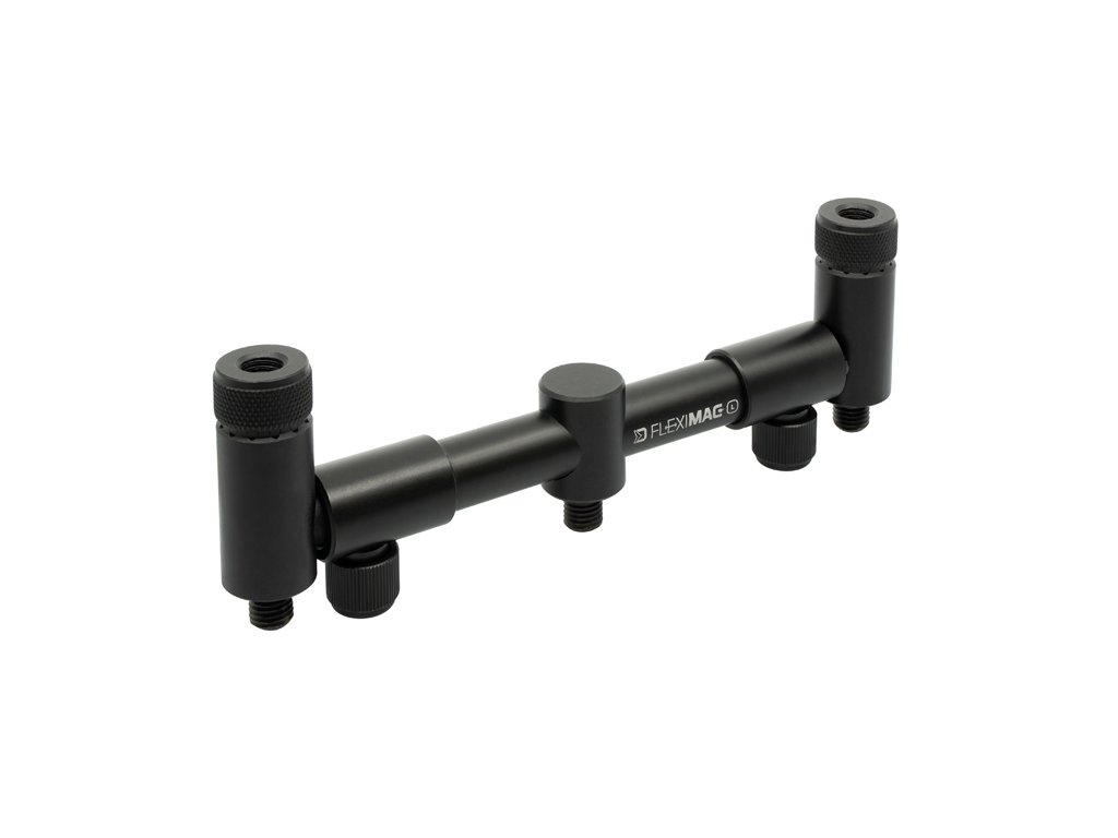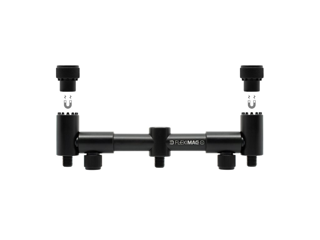 Hrazda na prúty s magnetickými rýchlospojkami a univerzálnym závitom, kompatibilná s väčšinou rázsošiek a búrkových tyčí dostupných na trhu. Výhodou rýchlospojky je, že si viete signalizátory a zadné držiaky ponechať zaskrutkované v závite a v prípade potreby jednoducho vytiahnuť z hrazdy, alebo zasunúť naspať pri začatí lovu. Jednotlivé ramená sú výsuvné, a teda je možné si šírku hrazdy prispôsobiť podľa svojich potrieb, napr. podľa veľkosti navijakov. V obľube je tiež roztiahnutie prednej hrazdy a vytvorenie vejárového rozloženia prútov, pri ktorom špičky smerujú mierne od seba. Ramená sú zo spodnej časti zrezané do roviny, takže po utiahnutí poistných skrutiek perfektne držia na mieste a nepretáčajú sa. FlexiMAG BUZZ je vyrobená z pevného hliníka, potiahnutého odolnou čiernou práškovou farbou. Dodávame ju v dvoch veľkostiach, konkrétne kratšia L určená na dva a dlhšia XL na tri prúty. Technické parametre: Dĺžka: FlexiMAG BUZZ L: 18-25cm| Kategória: | Kaprárske |