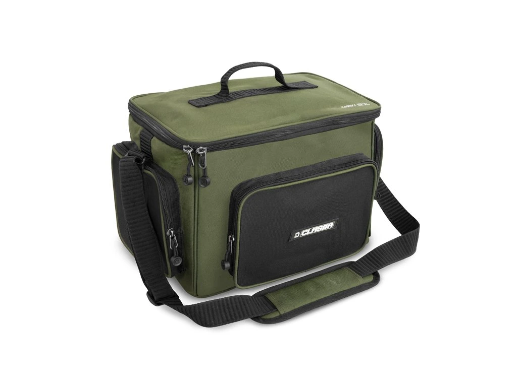 Taška Delphin Classa CarryALL XL je ideálnym spoločníkom na vašu rybársku výpravu. Táto priestorná a funkčná taška bola špeciálne navrhnutá na organizáciu a prepravu potrebného vybavenia a oblečenia na miesto lovu. Je vyrobená z trvácnych a odolných materiálov, ktoré zaručujú jej dlhú životnosť a ochranu obsahu vo vnútri pred nepriaznivými podmienkami. Taška je v rohoch vystužená, takže si zachováva svoj tvar aj keď je prázdna. Spodná časť je navyše opatrená gumeným materiálom, ktorý zamedzuje preniknutiu vlhkosti z mokrej zeme a tak chráni vaše oblečenie a vybavenie pred navlhnutím. Okrem hlavného úložného priestoru disponuje dvomi bočnými a jedným predným zipsovateľným vreckom pre menšie príslušenstvo. Pod vekom tašky sa nachádza praktické zipsovateľné vrecko zo sieťoviny. Hlavný priestor tašky je navrhnutý tak, aby do neho bolo možné ukladať ďalšie tašky zo série CLASSA, SPACE či AREA. Taška je vybavená kvalitnými zipsami, ktorých bežce sú opatrené gumenými ťaháčikmi s logom Delphin. Tašku je možné prenášať pomocou textilného úchopu na vrchnej strane, alebo pomocou pohodlného popruhu pre nosenie cez plece.