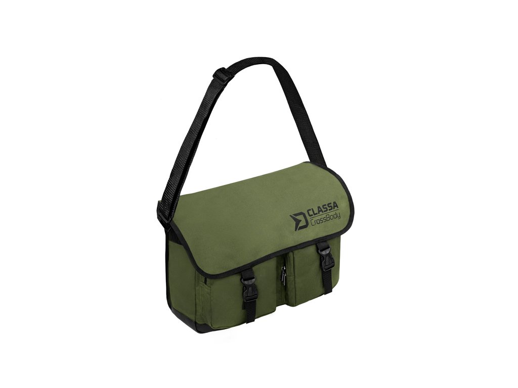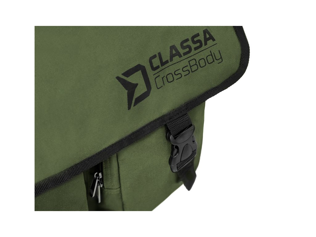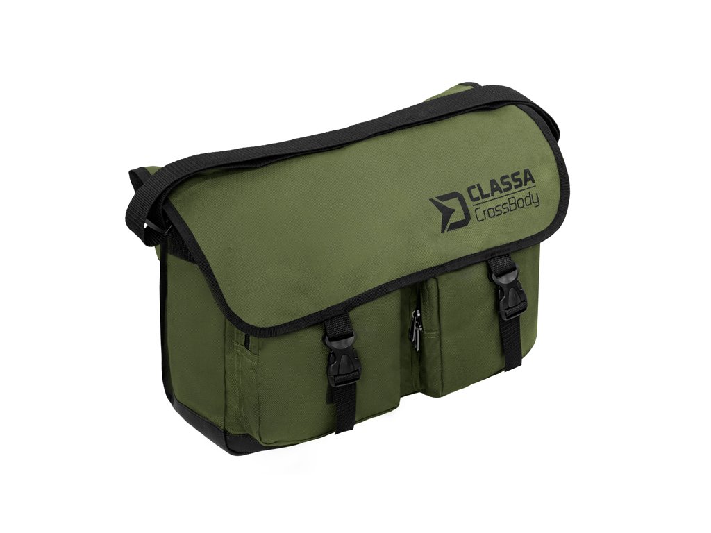Univerzálna a praktická “cross body“ taška vhodná pre všetkých rybárov, poľovníkov ale taktiež na bežné využitie, či už ju budete nosiť do práce, školy alebo na nákupy. Hlavný vnútorný priestor poskytuje dostatok miesta na uschovanie a prenos rôzneho príslušenstva. Navyše je v ňom aj druhé- zipsovateľné, čierne vrecko, vďaka ktorému viete veci vo vnútri tašky efektívne odseparovať. CLASSA CrossBody disponuje v prednej časti taktiež dvoma samostatnými vreckami, ktoré sú opatrené kvalitnými dvojzipsami. Taška je navrhnutá v tmavozelenej farbe v kombinácii s čiernymi prvkami ako klipy, zipsy, ramenný popruh, či efektné logo. Celá spodná časť a boky do výšky 5 cm sú opatrené kvalitným nepremokavým materiálom. Nehrozí tak znečistenie a následne znehodnotenie produktu pri položení napríklad na mokrú alebo špinavú zem. Vďaka svojej univerzálnosti a spratnosti si nájde uplatnenie a priaznivcov v rôznych sférach. Technické parametre: Celkový rozmer: 40x35x13cm Vnútorný rozmer hlavného vrecka: 40x30x10cm Rozmer predných vreciek: 20x16x3cm Rozmer vnútorného vrecka: 30x20cm| Kategória: | Tašky |