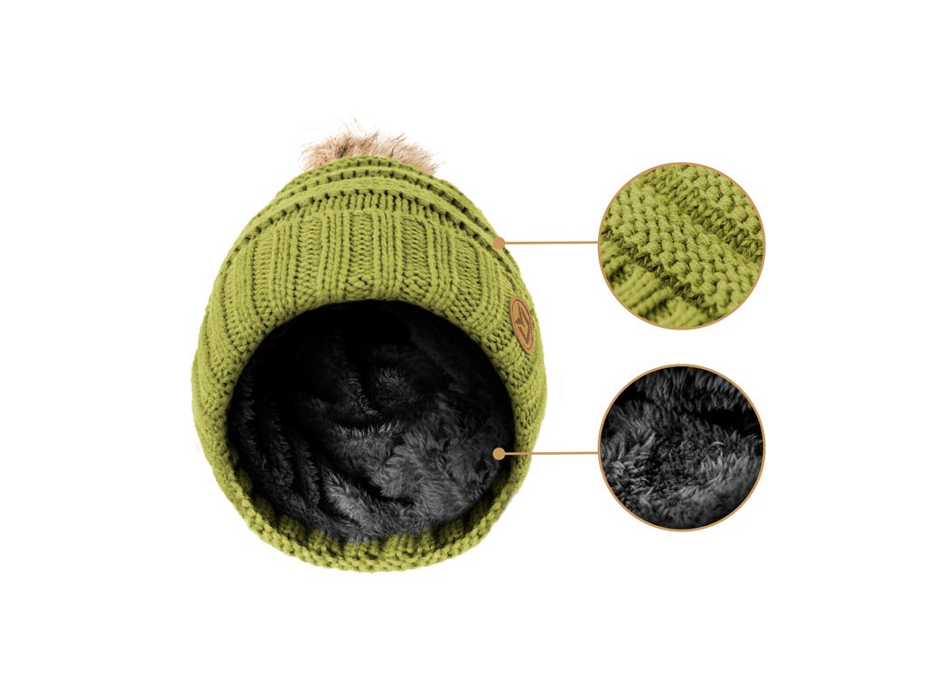 Štýlová, extra teplá čiapka do studených zimných dní, to je Delphin FolkSchool . Vďaka svojmu prepracovanému dizajnu v zelenej farbe si ju obľúbite nie len počas zimných vychádzok k vode ale aj pri každodennom nosení a to aj v prípade ak nie ste rybár. Čiapka na prvý pohľad zaujme veľkým brmbolcom a dizajn dopĺňa taktiež decentné koženkové logo spoločnosti Delphin. Vonkajšia, zaujímavo štruktúrovaná časť, je tvorená pleteným akrylom, zatiaľ čo vo vnútri sa nachádza hrubý a na dotyk veľmi prijemný česaný polyester tmavo-sivej farby. Takáto kombinácia zabezpečuje maximálny tepelný komfort a pohodlie aj počas mrazivých zimných dní. Materiálové zloženie: 100% polyester